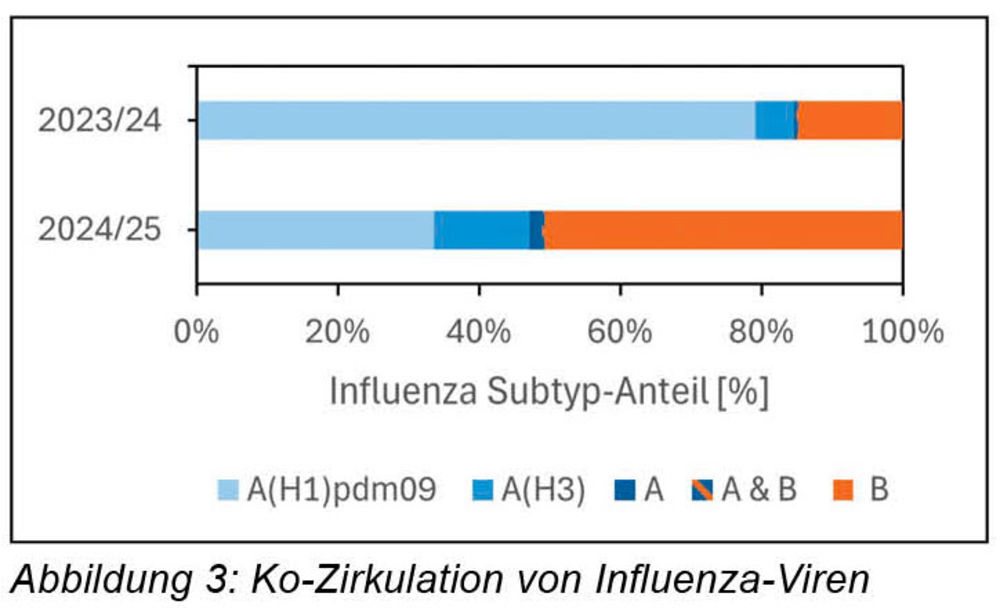 In der Saison 2023/24 war SARS-CoV-2 in 1.965 von 13.629 Abstrichen (14,4 Prozent) und in der Saison 2024/25 in 911 von 12.990 Abstrichen (7,0 Prozent) nachweisbar.