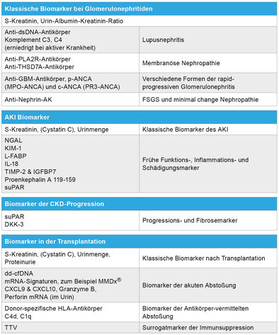 Tabelle: Ausgewählte Biomarker in der Nephrologie